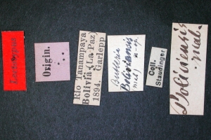 7-9: Paralectotypus ♂ von Butleria boliviensis Mabille, 1898: Daten siehe Etiketten (fot.: Bernard Hermier, Fotos bearbeitet: Michel Kettner), coll. Zoologisches Museum der Humboldt-Universität zu Berlin.