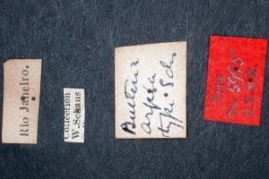 4-6: Syntypus ♂ von Butleria arpia Schaus, 1902: Daten siehe Etiketten (fot.: Bernard Hermier, Fotos bearbeitet: Michel Kettner), coll. National Museum of Natural History, Washington, D.C., USA.