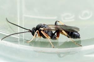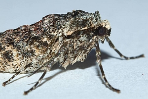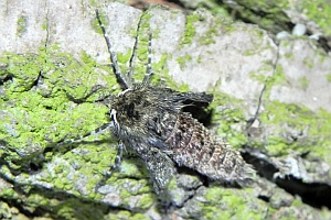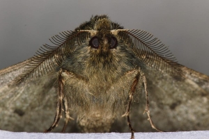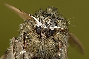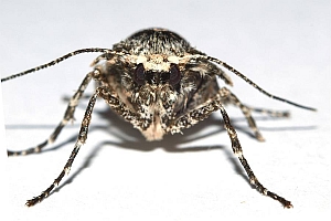 Frontalansicht: deutlich sichtbar sind die weiß behaarte Fühlerbasis und die weiß beschuppten ersten Antennenglieder. (Joachim Rutschke)