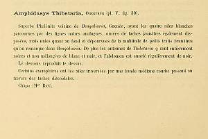 - Erstbeschreibung: Oberthür, C. (1886): Espèces nouvelles de lepidoptères du Thibet. — Études d'entomologie 11: [V]-XII, 13-38, pl. I-VII.