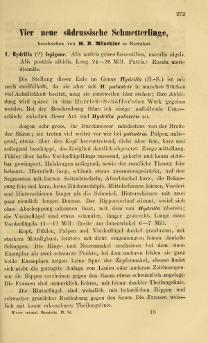 - Erstbeschreibung: Möschler, H. B. (1860): Vier neue südrussische Schmetterlinge. — Wiener Entomologische Monatschrift 4: 273-276.