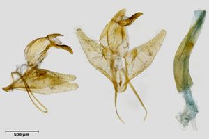 1: ♂, Deutschland, Thüringen, Herbsleben, Unstrut-Hainich-Kreis, Feuchtgebiet Herbslebener Teiche, 160 m, 51.130°N, 10.869°E, 29. Juni 2024, am Licht, leg. E. Anton (prep. & Foto: Hartmuth Strutzberg), det. Friedmar Graf, Falter im ForumForum