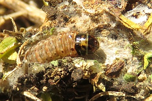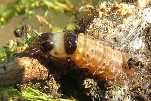 1: Belgien, Rochefort, 220 m, Raupe in Gespinströhre unter Hufeisenklee (Hippocrepis comosa) 24. April 2021, (leg., cult., det. durch Zucht & Foto: Ruben Meert)