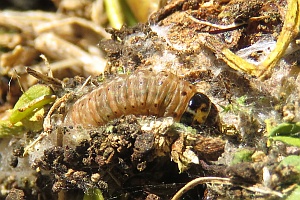 1-2: Belgien, Rochefort, 220 m, Raupe in Gespinströhre unter Hufeisenklee (Hippocrepis comosa) 24. April 2021, (leg., cult., det. durch Zucht & Fotos: Ruben Meert)