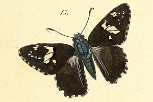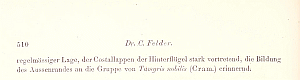 - Erstbeschreibung: Felder & Felder & A. F. Rogenhofer (1864-1867): Reise der österreichischen Fregatte Novara um die Erde in den Jahren 1857, 1858, 1859 unter den Befehlen des Commodore B. von Wüllerstorf-Urbair. Zoologischer Theil. Zweiter Band. Zweite Abtheilung: Lepidoptera. Atlas: 1-10 (Inhalts-Verzeichniss pl. I-LXXIV), 1-10 (Erklärung der Tafeln LXXV-CVII), 1-20 (Inhalts-Verzeichniss Tafeln CVIII-CXL), pl. I-CXL.