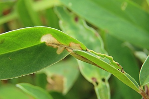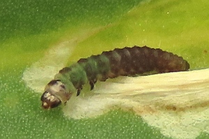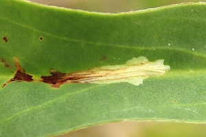 Kaltenbach (1856: 227) meldete: "Die Larve minirt im April und Juli die Blätter der Anthyllis vulneraria, Lathyrus, Onobrychis etc. und wohnt in weisslichen Flecken. "