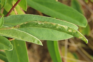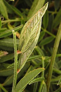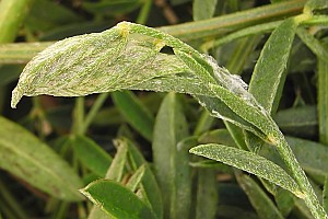 Von Klimesch (1984: 164) ist zum Synonym Iwaruna psoralella zu erfahren: "Die Raupe miniert in der Jugend und lebt später in zusammengesponnenen Blättern von Psoralea bituminosa."