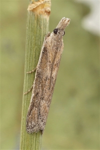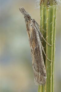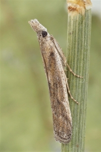 Bidzilya et al. (2019) können erstmals einen Beitrag zur Nahrung der Raupe dieser Art liefern: "The life style of larvae was studied in the southern part of the Arabatskaya strelka, Crimea. The mature larvae were observed under the single large plants of Suaeda confusa Iljin on the sand shore in June. The larvae feed from a tube which proximal end fixed to lower leaves of host plant. Pupation takes place in a separate tube close to the sand surface." Angesichts der weiten Verbreitung der Art ist davon auszugehen, dass noch weitere Suaeda-Arten genutzt werden, möglicherweise noch Arten weiterer verwandter Gattungen.