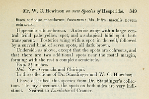 - Erstbeschreibung: Hewitson, W. C. (1876): Description of twenty new Species of Hesperidae. — The Annals and Magazine of Natural History, including Zoology, Botany, and Geology. Fourth Series 18: 347-355.