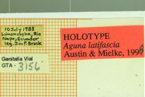 - Erstbeschreibung: Austin, G. T. & O. H. H. Mielke (1998): Hesperiidae of Rondônia, Brazil: Aguna Williams (Pyrginae), with a partial revision and descriptions of new species from Panama, Ecuador, and Brazil. — Revista brasileira de Zoologia 14 (4): 889-965. [PDF auf scielo.br]