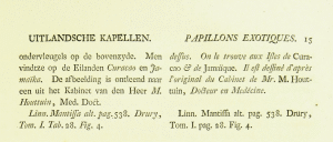- Erstbeschreibung: Cramer, P. („1779“) [1777]: De uitlandsche kapellen voorkomende in de drie waereld-deelen Asia, Africa en America 2: 1-151, pl. XCVII-CXCII. Amsteldam (S. J. Baalde), Utrecht (Barthelemy Wild).