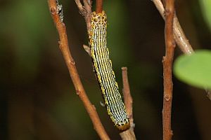 5-6: Russland, Moskau Region, Orekhovo-Zuevo Bezirk, Dorf Dorogali 2, Raupen auf Vaccinium uliginosum am 11. Mai 2019, Fotos 14. Mai 2019 (leg., cult., det. & fot.: Andrey Ponomarev)Forum