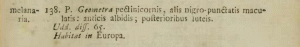 - Phalaena melanaria Linnaeus, 1758 [Originalkombination]