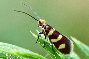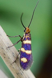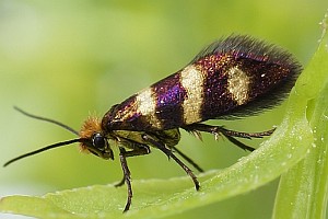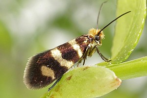- Micropterix allionella (leuchtend-goldene Querbänder breit, Costalfleck oft vorhanden)