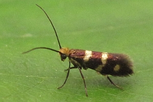 - Micropterix rothenbachii (Subapikalfleck dreieckig, oft mit Costalfleck verbunden und an der Costa einen kleinen Fleck in der Grundfärbung bildend)