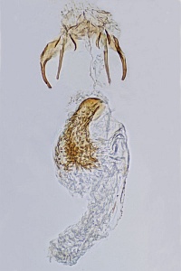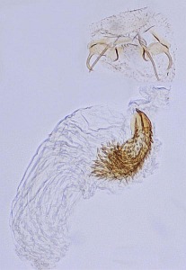 1: ♂, Deutschland, Niedersachsen, Stadt Sehnde, Ortsteil Wassel, Bockmerholz (Eschen-Eichen-Hainbuchenwald), 80 m, Waldrand, 24. April 2017, Tagfund um 14 Uhr (leg. Tina Schulz; Präparation, det. & Mikrofoto Peter Buchner)