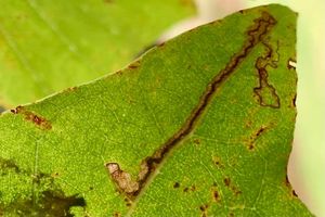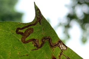 Die Raupe miniert in Blättern von Platanen (Platanus orientalis, Platanus x hispanica).