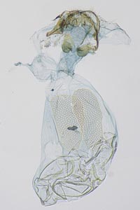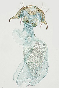 Die Minen beginnen - familientypisch - mit der außen angeklebten Eischale. Die Kontrolle, ob diese Eischale auch vorhanden ist, bewahrt verlässlich vor Verwechslungen mit Narben oder ähnlichen Artefakten bzw. Fraßspuren durch andere Insekten.