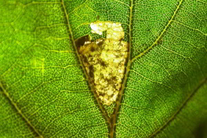 Links: Stukenbrock, 120 m, 25. Oktober 2020, Raupe mit braunem Kopf, als Ectoedemia albifasciella bestimmt; rechts: Niederkassel, 55 m, 12. November 2020, Raupe mit dunklem Kopf, als Ectoedemia heringi bestimmt. Die Farbe des Kopfes der Raupe als Bestimmungsmerkmal hat sich aber als nicht wirklich verlässlich herausgestellt, siehe dazu [Forum] einschließlich der Folgebeiträge