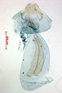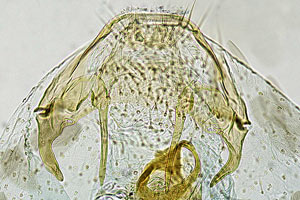 ♀♀ können zuverlässig anhand der Anzahl der Fäden am Ductus spermathecae unterschieden werden. (František Kosorín, Übersetzung von E-Mails am 13. April 2018 an Tina Schulz).