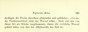 - Erstbeschreibung: Heinemann, H. (1871): Nachtrag zu den Bemerkungen über die Arten der Gattung Nepticula (Wiener entom. Monatsschrift VI. p. 237). — Berliner Entomologische Zeitschrift 15: 209-223. Berlin (Nicolai'sche Verlags-Buchhandlung).