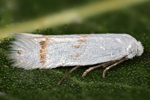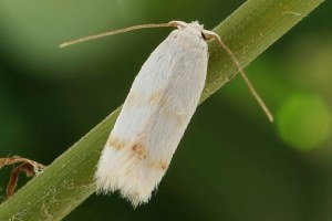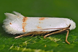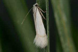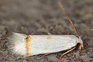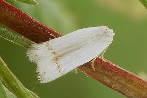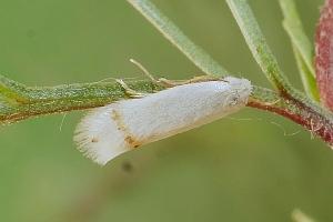 In der Literatur und in Internetquellen findet sich durchweg Rumex acetosella (Kleiner Sauerampfer) als Nahrungspflanze der Raupe. Ob dies nur eine naheliegende Vermutung ist, oder ob hier tatsächlich Freilandfunde (von wo?) zu Grunde liegen, wird dabei nicht klar. Gleiches gilt für Rumex scutatus (Schildampfer) - eine Pflanze, die den meisten Fundorten des Falters fehlen dürfte. Bei Regier et al. (2015) heißt es: "The other common European species, O. salaciella Treitschke, has been reared from Rumex L. (Polygonaceae; van Nieukerken, 1990)." Und bei Van Nieukerken (1990) findet sich dann der Hinweis auf die wohl einzige Arbeit mit konkreten Beobachtungen, zu Warren (1888) und dessen Aufsatz "The Habits of Opostega salaciella". Warren (1888) schreibt darin: "I am glad to be able to record the accidental breeding of O. salaciella, Tr., and the name of its probable food-plant. In a bag containing the roots and plants of Rumex acetosella, from which I was breeding Gelechia peliella, Tr., I found in July a single specimen of salaciella, just emerged, and when the rubbish was subsequently tourned out, a second dead and dried specimen of the same insect was discovered. No other plant besides the Rumex had been introduced into the bag, so that, I think, we may safely conclude that this is its food-plant; and it probably feeds among the flowers or in the flower-stalk." Wie kommt Warren zu seiner Vermutung? Er erklärt: "For having observed that the peliella larvae were in the habit of emerging at night from their silken tubes at the base of the plants, and spinning fine threads up the stems to the flower-heads on which they fed, I replenished the original stock of food with a bunch of fresh flower-stems, and I think it most probable that in these last the salaciella larvae were hidden. The plant grows freely in all the localities where the perfect insect is usually met with." Es spricht also alles dafür, dass die Raupe irgendwo am Kleinen Sauerampfer lebt - wo ist aber auch 130 Jahre nach Warrens Zucht-Unfall keineswegs klar. Zu Rumex scutatus ist mir keine konkrete Quelle bekannt.
