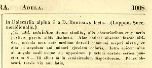 - Erstbeschreibung: Zetterstedt, J. W. (1839): Insecta Lapponica. Sectio Quarta. — Sp. [869/870]-1039/1140. Lipsiae (Leopold Voss).