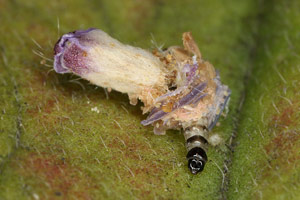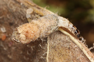 - N. minimella: kleiner Raupensack, "biskuitförmig" mit "faseriger Oberfläche" (Schütze, 1931).