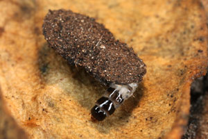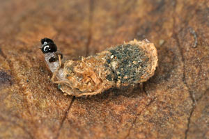 Die ersten Gehäuse bauen sich die Räupchen aus den Blüten oder Samenkörbchen der jeweiligen Nahrungspflanze. Ab jetzt leben sie am Boden. Mit allerlei Pflanzenteilen aus der Bodenstreu werden die Gehäuse rasch ausgebaut. Dabei entstehen oft kunstvolle Kreationen. Schon wenige Tage nach dem Verlassen der Blüten verschwinden die bizarren Kostüme und machen schlichten, flachen Gehäusen mit Vorder- und Hinterausgang Platz.