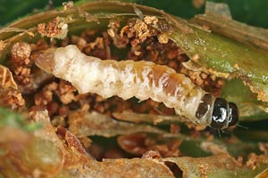 Die Jungraupen leben an der Nahrungspflanze zuerst in den Fruchtständen, welche sie weitgehend leer fressen. Da der Kot nicht ausgeworfen wird, ist der Befall von aussen nicht erkennbar.