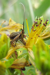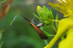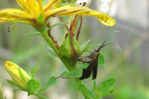Die Raupen leben an Johanniskraut (Hypericum sp.).