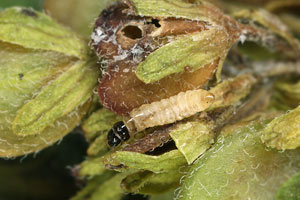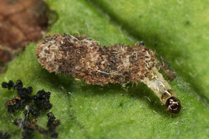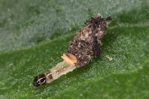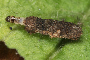 Die Jungraupen leben an der Nahrungspflanze zuerst in den Fruchtständen. Der erste Sack wird aus Genagsel- und Pflanzenteilchen hergestellt. Mit diesem lassen sich die Räupchen zu Boden fallen. Sie wurden dann in ein Zuchtgefäss mit eingetopfter Nahrungspflanze umgesiedelt und ins Freie gestellt. Dort konnte ich sie noch rund zwei Wochen regelmässig beim Fressen der grünen oder teilweise welken Basisblätter der Nahrungspflanze beobachten. In dieser Zeit wuchsen die Raupengehäuse auf rund 5 mm Länge an.