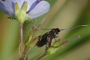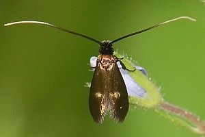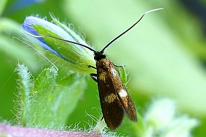 - Cauchas fibulella: einfarbig, tiefschwarz.