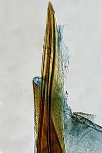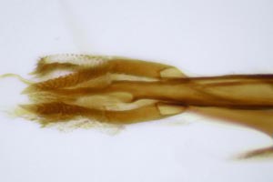 - Cauchas leucocerella: Valven in Form zweier breiter, übereinanderliegender Lappen.