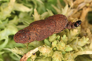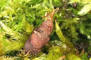 1: Exuvie des oben gezeigten ♂ (Falterbild 3), Schweiz, Bern, Saicourt, Hochmoor, 920 m, 9. Oktober 2013, Raupe aus Bodenstreu gesiebt, in Zimmertemperatur am 14. März 2014, e.l. 6. April 2014 (leg., cult., det. & Foto: Rudolf Bryner)Forum