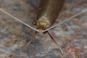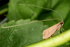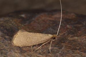 Kleinere Art; Spannweite 13-17 mm; Fühler weiss; Flügel auffallend breit und gerundet. Vorderflügel ockergelb mit meistens nur schwach sichtbarer Gitterzeichnung. ♂ im Gegensatz zu allen andern Nematopogon-Arten mit breiten Schuppen im äusseren Teil der Hinterflügeloberseite. Vorzugsweise in Feuchtbiotopen, Auenwäldern; Flugzeit ab Ende Mai. (Rudolf Bryner)