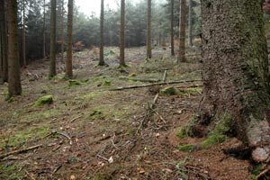 Die Fundorte der Raupensäcke sind völlig vegetationslose Nadelstreuböden, örtlich mit mehr oder weniger Falllaub, meist Buche. Sollten sich die Raupen tatsächlich nur von diesem nährstoffarmen Substrat ernähren, so wäre eine zweijährige Entwicklungszeit einleuchtend.