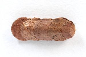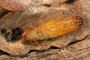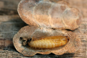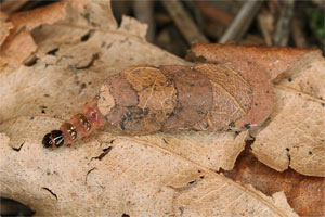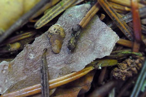 3, Raupe aus ihrem Gehäuse (oberstes in Bild 1) herausgeholt: Funddaten wie Bild 1 (Foto: Rudolf Bryner)