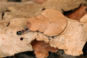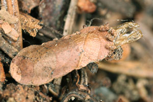 In allen vier Fällen, da sich die Raupen nach der Überwinterung verpuppt haben, handelt es sich um Raupengehäuse, welche aus fünf oder sechs Blattabschnitten aufgebaut sind (Bild 4). Ist dies ein zuverlässiges Merkmal, um die Raupensäcke bereits im Herbst nach ihrem Alter sicher trennen zu können? Fünf oder mehr Blattabschnitte würden dann bedeuten, dass die Raupe ihre letzte Überwinterung vor sich hat und im folgenden Frühjahr schlüpfen wird. Weniger als fünf Blattabschnitte wäre ein Hinweis darauf, dass die Raupe im kommenden Jahr noch eine zweite Überwinterung vor sich haben wird. Bereits in der Literatur gibt es Anmerkungen darüber, dass gewisse Adeliden-Arten eine zweijährige Raupenentwicklungsdauer haben.
