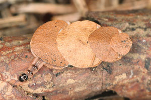 Unter mehr als fünfzig im Herbst 2011 in der Bodenstreu in Wäldern gefundenen Adelidensäcken waren die aus Buchenlaub-Halbmonden konstruierten Raupengehäuse die zahlreichsten. Ich fand sie in Bergwäldern mit hohem Anteil an Rottanne (Picea abies) oder in montaner Lage in reinen Nadelwäldern.