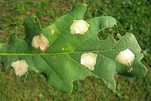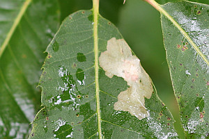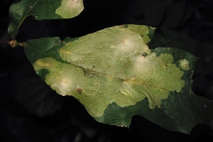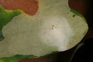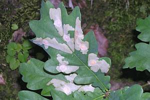 3: zwei Minen an einem Eichenblatt, am oberen Rand des linken Blatts, Deutschland, Rheinland-Pfalz, Ober-Olmer Wald bei Mainz, 7. Oktober 2007 (Freilandfoto: Jürgen Rodeland), det. Jürgen Rodeland