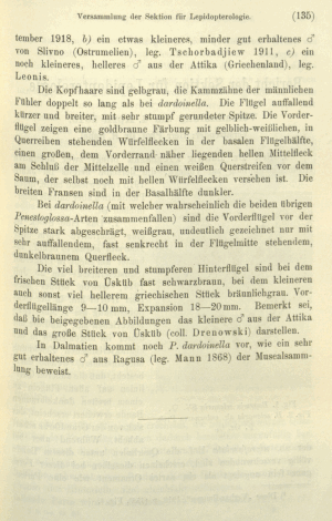 - Erstbeschreibung: Prinz, J. [Vors.] (1919): Bericht der Sektion für Lepidopterologie. Versammlung am 7. März 1919. — Verhandlungen der zoologisch-botanischen Gesellschaft in Wien 69: 122-135.