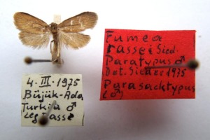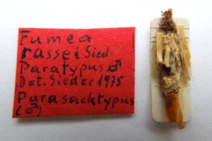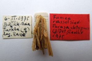 65 Paratypen ♂♂ mit 65 Sackparatypen (♂♂) in Coll. Sieder (Psychidentausch).