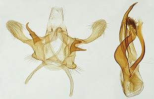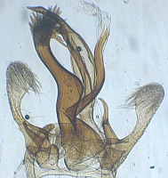 2: Genitalpräparat eines nicht abgebildeten ♂, : Österreich, Niederösterreich, Sollenau, am Licht 18. Juni 2014 (leg., det., Präparation & Mikro-Foto: Peter Buchner)
