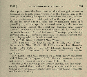 - Erstbeschreibung: Walsingham (1908): Microlepidoptera of Tenerife. — The Proceedings of the Zoological Society of London for the Year 1907: 911-1034 + pl. LI-LIII.