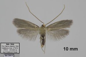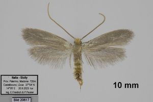 1-2: zwei ♂♂, Italien, Sizilien, Catania, Umgebung des Ätna, 997 m, 37.646638, 15.010247, 20. und 21. August 2020 am Licht (leg. gen. det. & fot.: Friedmar Graf), Referenz: Gaedike, ME 9 Tineide 2, Text & ♂ Gen. Fig. 201Forum