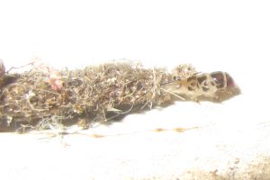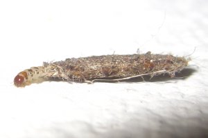 Wie bei den meisten detritophagen Tineiden-Raupen weiß man über die genaue Raupennahrung nur wenig bescheid. Bippus (2016: 159-160) schreibt zu seinen Funden in La Possession (La Réunion): "I find their larval cases regularly at my home and its terrace throughout the year. [...] Both species feed on insect detritus. Although there are mentions on species of their genus that might feed on pigeon dung (Zimmermann, 1978), clothes, bird feathers or spider webs (Arakelian, 2010) I had the impression that many of former notifications of food sources might be erroneously reported. [...] I also find regularly their cases suspended near spider webs though I believe that they were attracted by the insects caught in the spider webs or their remains. It might be notable that I often find other arthropods as Acari Leach, 1817 on the insect detritus and I cannot exclude that the moths larvae might also feed on them."