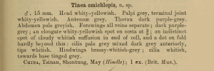 Die Art wurde in Europa meist unter den Namen Monopis nonimella Zagulajev, 1955 bzw. Tinea nonimella (Zagulajev, 1955) gemeldet. Bei Gaedike (2006: 220) und Gaedike & Baldizzone (2008: 75) wird dieses Taxon aber als Synonym zur nach einem Einzelexemplar aus China beschriebenen Tinea omichlopis Meyrick, 1928, gestellt. Von einer möglichen erneuten Aufwertung von T. nonimella zur bona species weiß ich nichts.