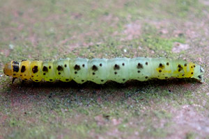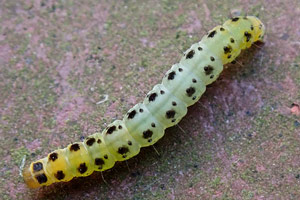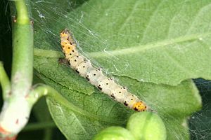 Schütze (1931: 133) hatte zur Raupe noch geschrieben: "An Evonymus [Euonymus] und Rhamnus frangula [Frangula alnus] einzeln an und zwischen den Blättern in leichtem Gespinst, Verwandlung daselbst in einem Tönnchen. Major Hering fand sie in gleicher Lebensweise an Acer pseudoplatanus, nach Rössler auch an Rhamnus cathartica. Raupe ist leicht durch Klopfen zu erlangen und ist zu suchen, wenn Y. cognatellus [Yponomeuta cagnagella] bereits versponnen ist (Schütze)." Während die Raupen recht regelmäßig an Euonymus europaeus gefunden werden, scheint der für diese Art öfters verwendete deutsche Name "Faulbaum-Gespinstmotte" irreführend zu sein (weshalb er hier gestrichen wurde): Entweder die Raupe lebt gar nicht an dieser Pflanze, oder nur höchst selten. Gleiches gilt dann für Rhamnus cathartica. Für keine der beiden Arten konnte ich gesicherte Primärangaben finden - Rößler ([1867]: 325) etwa erwähnt nur "Evonymus europaea". Acer pseudoplatanus ist sicher falsch.