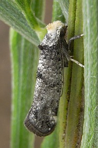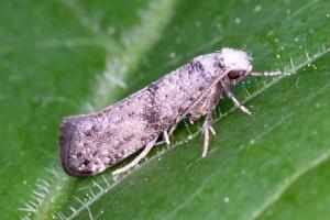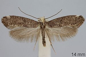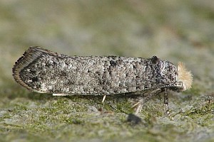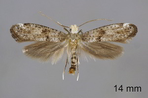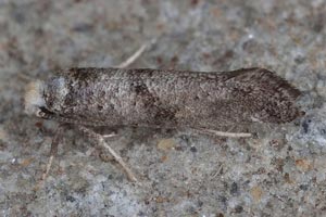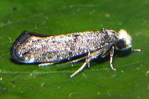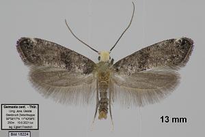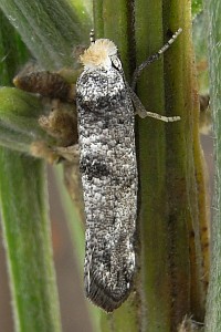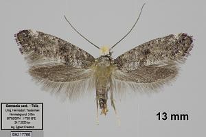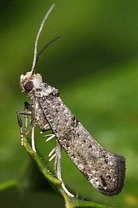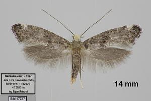 Der graue Thorax ist charakteristisch für Paraswammerdamia nebulella. Bei der Nachbarart Paraswammerdamia albicapitella ist der Thorax weiß.